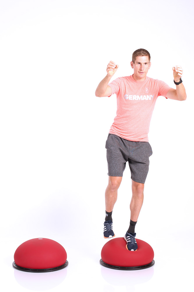 Der Jumper, ein luftgefüllter Trampolin-Ball, kommt im Training der deutschen Biathleten – und auch beim Langläufer Andreas Katz – regelmäßig zum Einsatz. Michaela Kreitmair schätzt vor allem, dass der Jumper äußerst praktisch für unterwegs ist: „Ich brauche quasi nur ein Gerät mitzunehmen und kann damit unglaublich viele Übungen machen – sei es Koordinations-training, dynamisches Beinachsentraining oder auch Rumpftraining.“ Übungen auf dem Jumper können entweder mit der Standfläche oder dem Ball nach oben durchgeführt werden. Die Kombination aus Kräftigung, Stabilisation und Koordination – im Stand, in Rücken- und Bauchlage oder im Unterarmstütz – gestaltet das Training mit dem Jumper abwechslungsreich und herausfordernd. Neben den großen Muskelgruppen werden vor allem die tiefliegenden Muskeln aktiviert sowie die inter- und intramuskuläre Koordination verbessert.