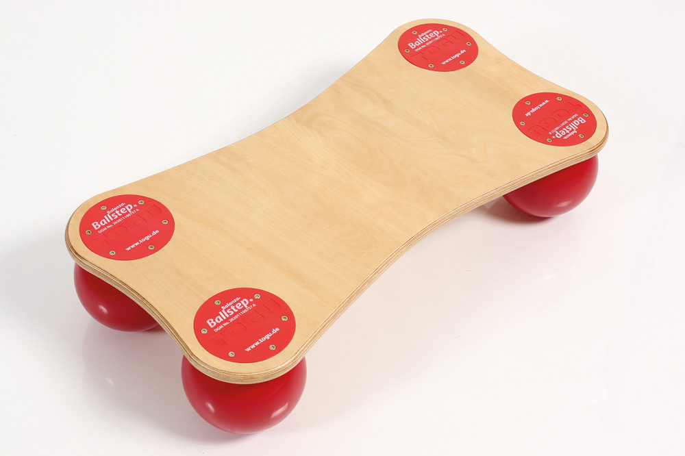A specially developed wood panel on four sturdy, air-filled balls: this is the Balanza® Ballstep®. The proven TOGU training product is now also available in the mini version. The Balanza® Ballstep® mini is even more compact and dynamic than its bigger version. The base is floating and unstable. Balance, coordination, strength and agility can be trained equally. The compensatory movements and the dynamic both activate the deep muscle groups, which are responsible for a healthy back and the stability of the body.